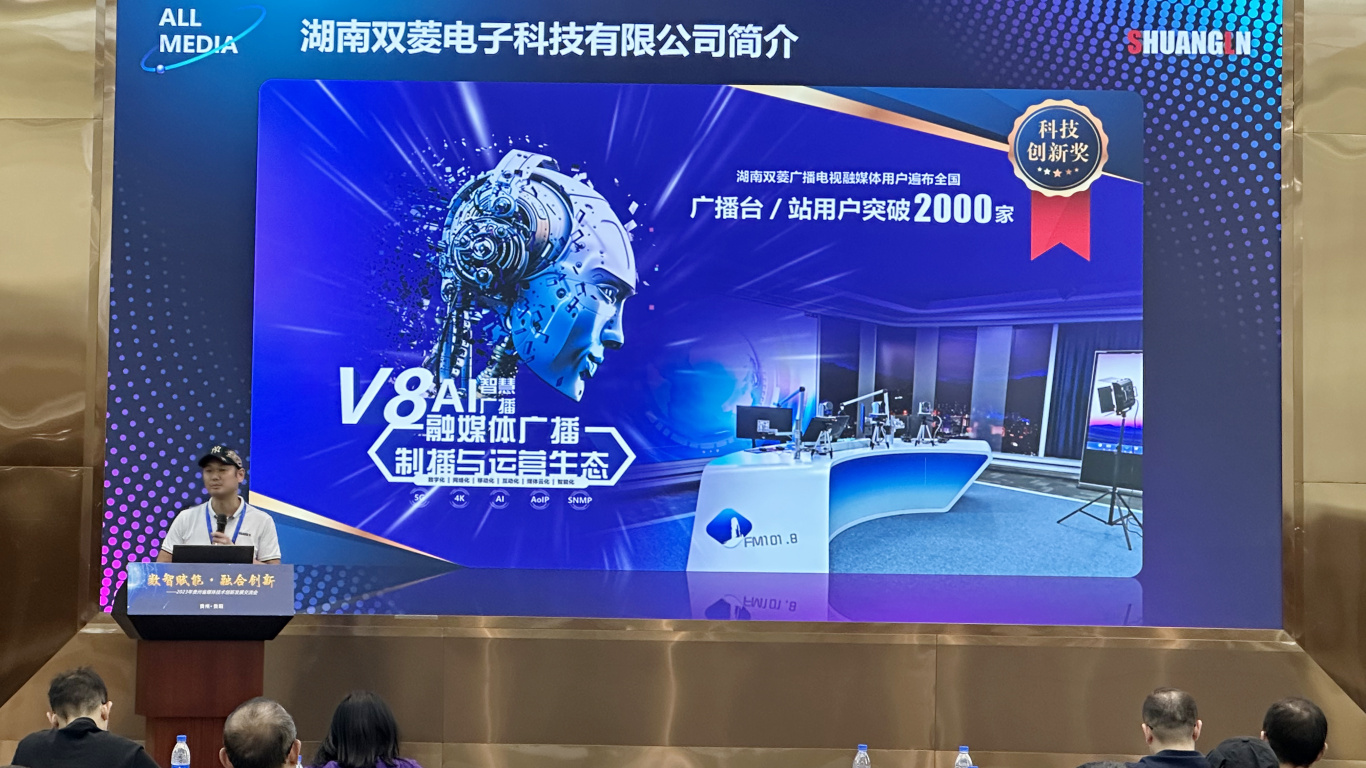The Guizhou Media Technology Innovation Development Exchange Conference was successfully held in Guiyang from September 19 to 22,2023. Under the theme of “Digital Intelligence Empowerment and Integrated Innovation,” the event gathered nearly 300 participants, including experts from the Technology Bureau of China Media Group, representatives from nine prefecture-level city radio and television stations, over a dozen district-level converged media centers, universities, and industry professionals. Hunan Shuangln Electronic Technology Co., Ltd., a renowned domestic R&D and manufacturing enterprise specializing in broadcasting equipment and a national “Little Giant” enterprise recognized for its specialized, refined, distinctive, and innovative capabilities, was invited to attend the conference.