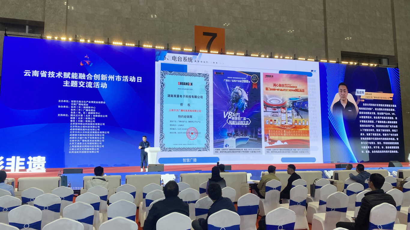 At the Yunnan Provincial Technology Empowerment and Fusion Innovation City Day event, Hunan Shuangln’s Yunnan distribution partners highlighted their new-generation V8 multimedia broadcasting system, Lingyun’s city-level converged media solution, and the Two-Center Integration Plan.