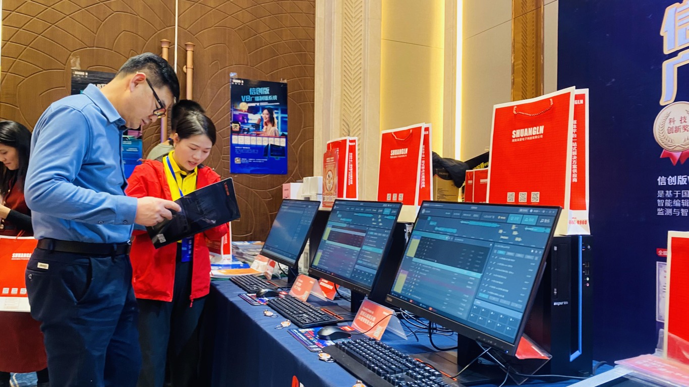 As the inaugural conference organized by Xinjiang Radio and Television Station, this converged media technology exhibition featured an innovative product showcase zone by Hunan Shuangln, presenting its cutting-edge technologies, products, applications and services to Xinjiang clients in a comprehensive and systematic manner.