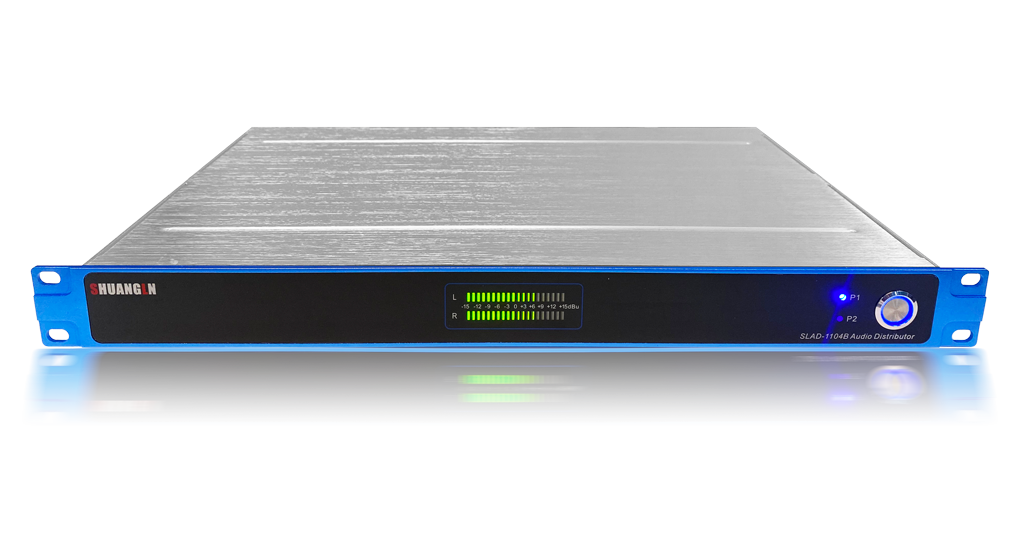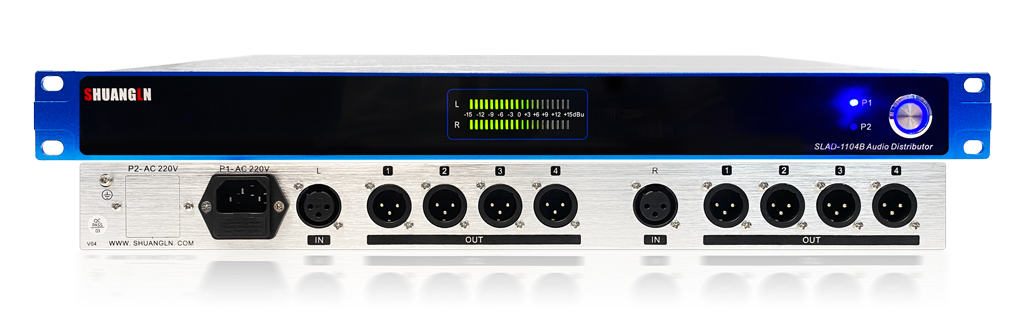 The SLAD-1104B analog audio distributor employs advanced dedicated audio distribution chips from around the world. It boasts high specifications, stable and reliable performance, an elegant and attractive appearance, and a wide range of models. All technical specifications meet Class A standards for broadcasting. It is widely used in radio stations, TV stations for broadcasting, editing, production, and live streaming, as well as in other media centers, studios, enterprises, schools, sports venues, stations, airports, hospitals, conference halls, hotels, and other places where there is a significant need for analog L/R stereo audio signal distribution and output.